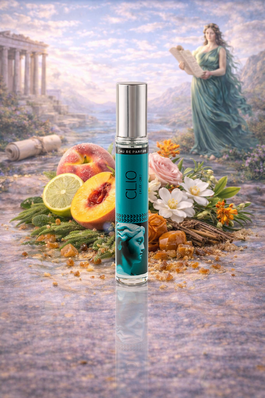 Clio to damska woda perfumowana inspirowana imieniem muzy historii, symbolizującej narrację czasu, pamięć i ponadczasowe opowieści. Ta wyjątkowa kompozycja łączy świeże, owocowo-cytrusowe nuty z delikatnymi akordami kwiatowymi i ciepłą, otulającą bazą, tworząc zapach, który jest zarówno elegancki, jak i uniwersalny – idealny na wiele okazji.