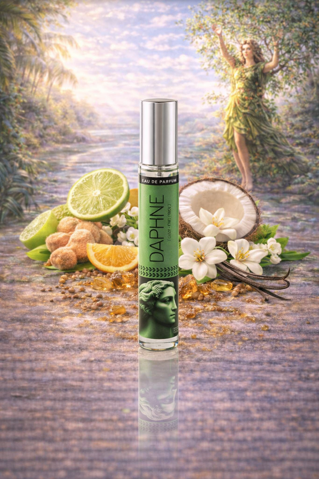 Daphne to wyjątkowa woda perfumowana dedykowana kobietom, inspirowana mityczną nymphą Daphne – symbolem sukcesu, wiecznej piękności i subtelnej zmysłowości. Ta zapachowa kompozycja łączy świeże cytrusowe akordy z kremowymi i kwiatowymi nutami, tworząc aromat, który otula zmysły, pobudza wyobraźnię i podkreśla naturalny urok jego nosicielki.