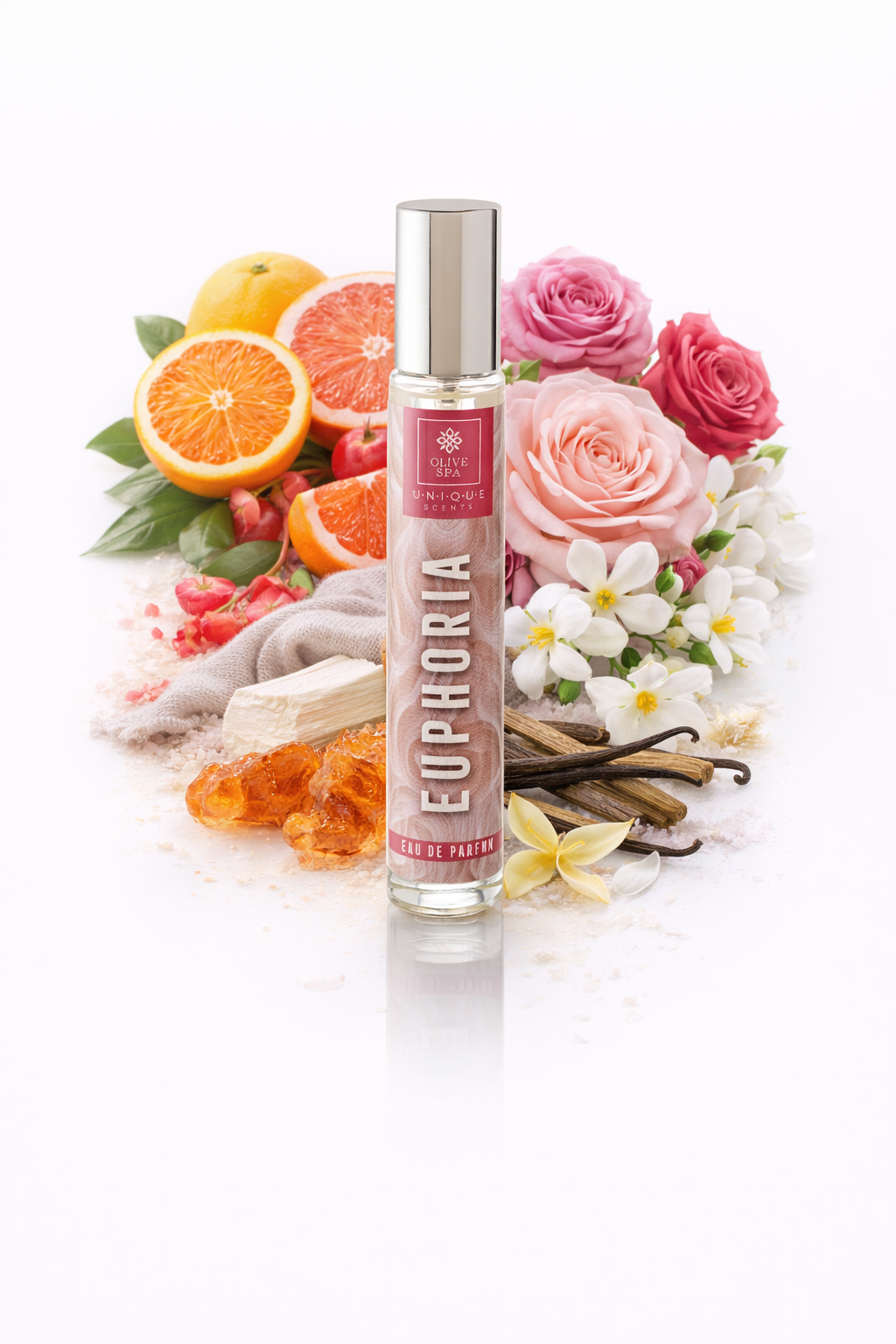 Euphoria to zmysłowa i inspirująca woda perfumowana, która przenosi w świat marzeń, harmonii i niewyczerpanej radości. Kompozycja łączy świeże, lekko gorzkie nuty cytrusowe z romantyczną różą i egzotycznym jaśminem, a całość otula ciepła baza z akcentami kaszmiru. Zapach idealny dla kobiet pełnych optymizmu, pewnych siebie i kreatywnych, które chcą poczuć prawdziwą ekstazę aromatu.
